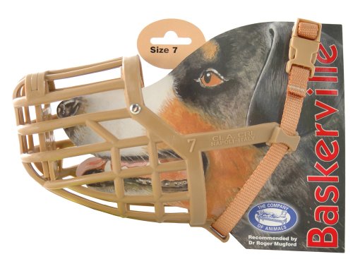 Baskerville Muzzle's are designed for the dog who's not perfect all the time. Humane, comfortable, safe. Permits panting and drinking. Made from soft plastic mesh.
